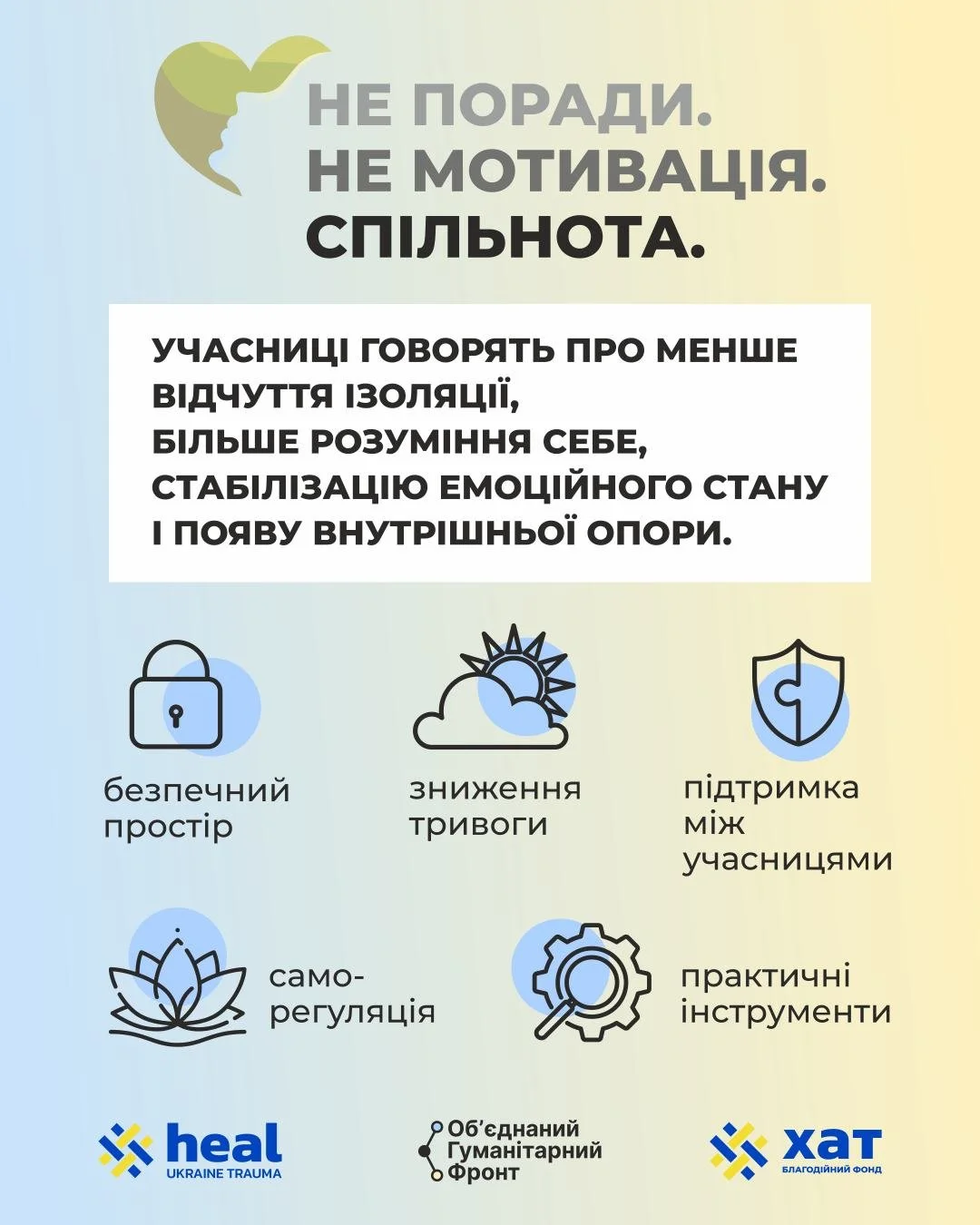 Поруч — люди з подібним досвідом і фахівці, які допомагають пройти цей шлях трохи м’якше і з більшою опорою.